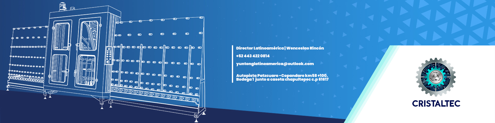 Comercializamos tecnología de punta para el procesamiento de vidrio y todos los equipos necesarios para complementar su producción, fabricados por compañías chinas certificadas con estándares internacionales de calidad como Yuntong Glass Mech-Electro Technology,Selim Glass Machinery, Green Vine, Paviglass y Boza Automation Machinery, reconocidas hoy por competir con las marcas más importantes del mundo.